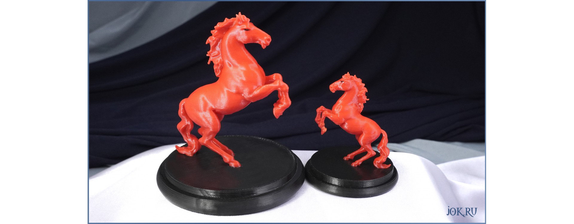 и подарочную продукцию по новейшей технологии многоцветной FDM 3D печати из качественного пластика на примере оригинальной фигурках с лошадками.