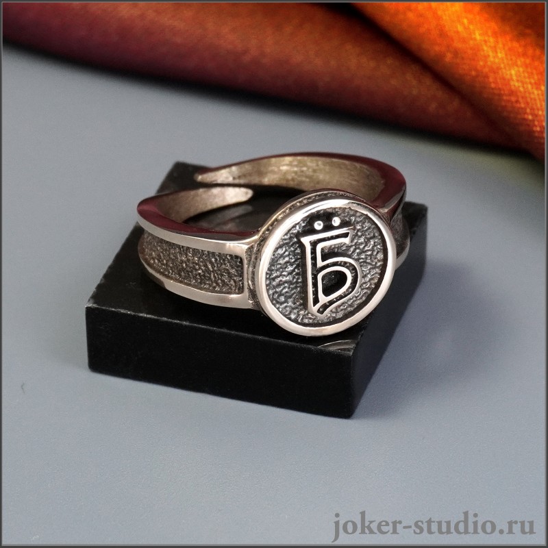 Кольцо с буквой Б отличается оригинальным дизайном, который привлекает внимание и вызывает интерес.
