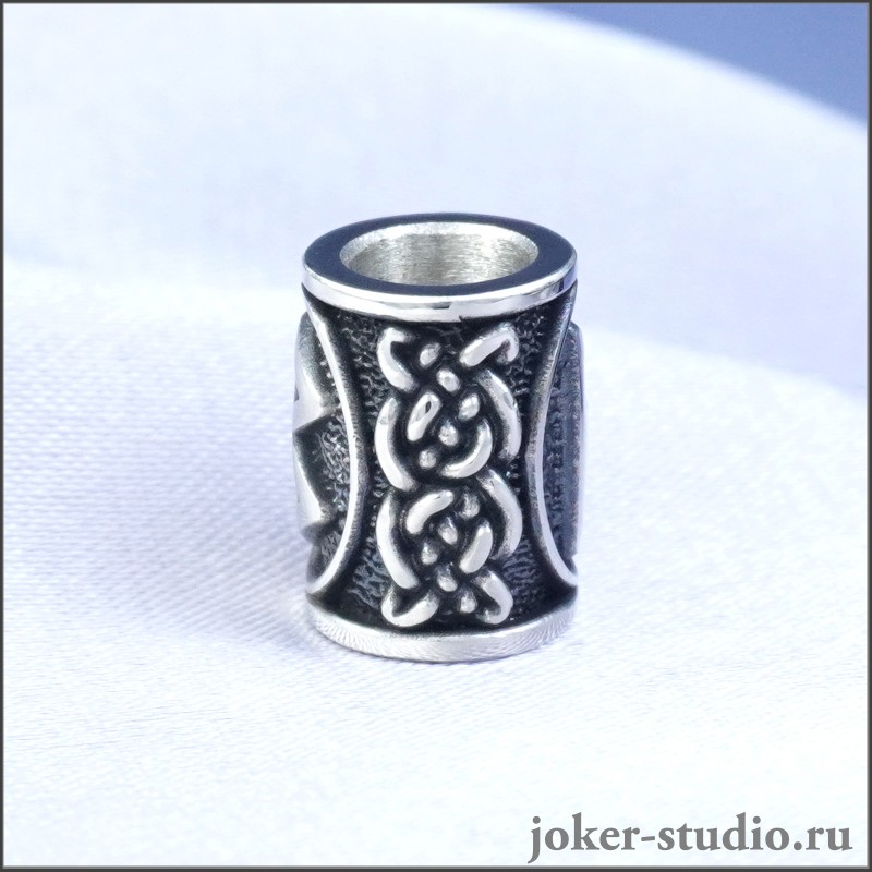 Ювелирная бусина с кельтским узором и руной Беркана (ᛒ) уникальное украшение сочетает древнюю символику и современный дизайн.