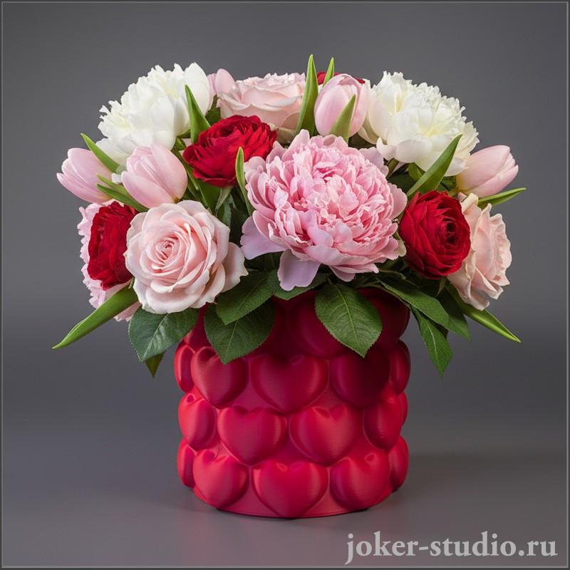 Элегантное красное кашпо для комнатных растений или ваза для букета живых цветов с сердцами — это не просто аксессуар,