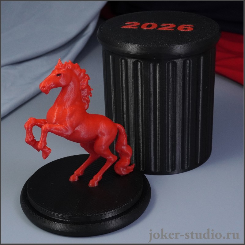 Представляем вам фигурку "Красная Лошадь", изготовленную методом 3D печати FDM из двухцветного пластика. Этот сувенир станет ярким акцентом в любом интерьере и идеальным подарком для близких или коллег.