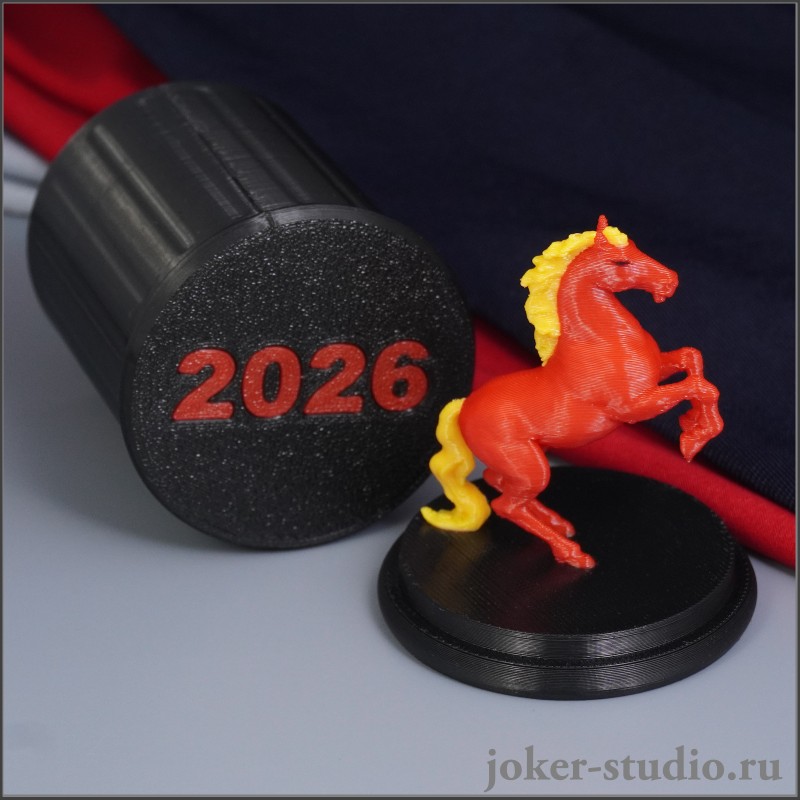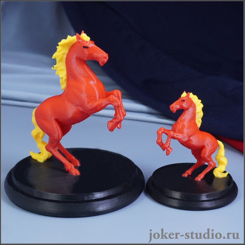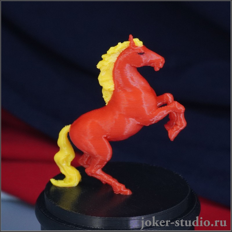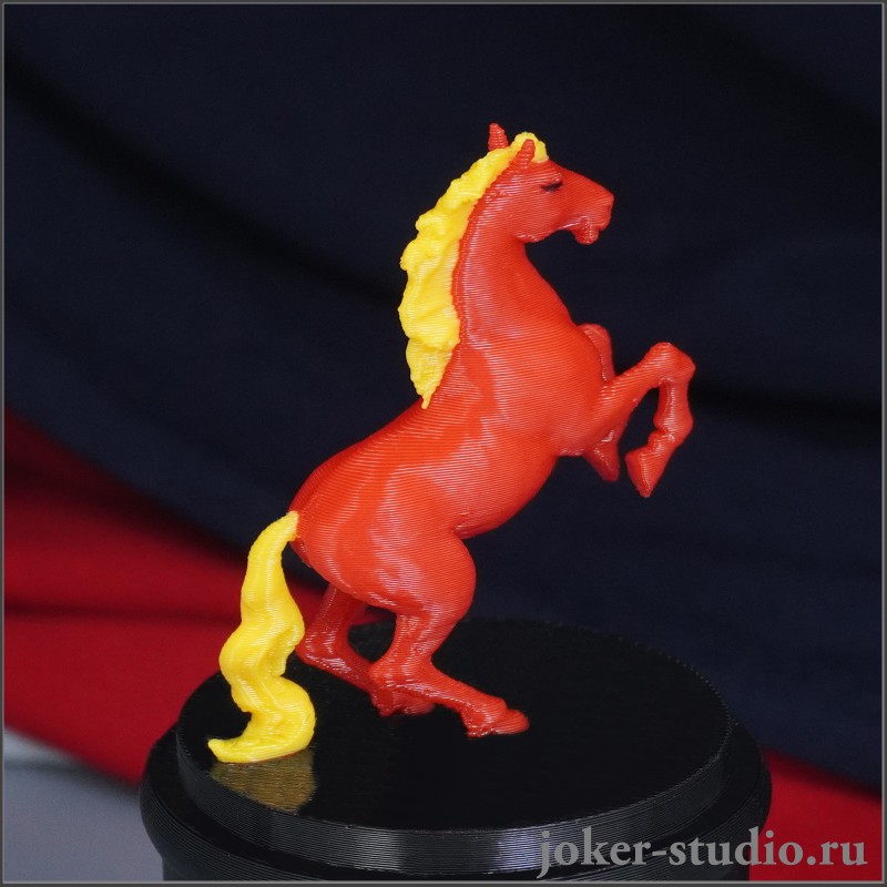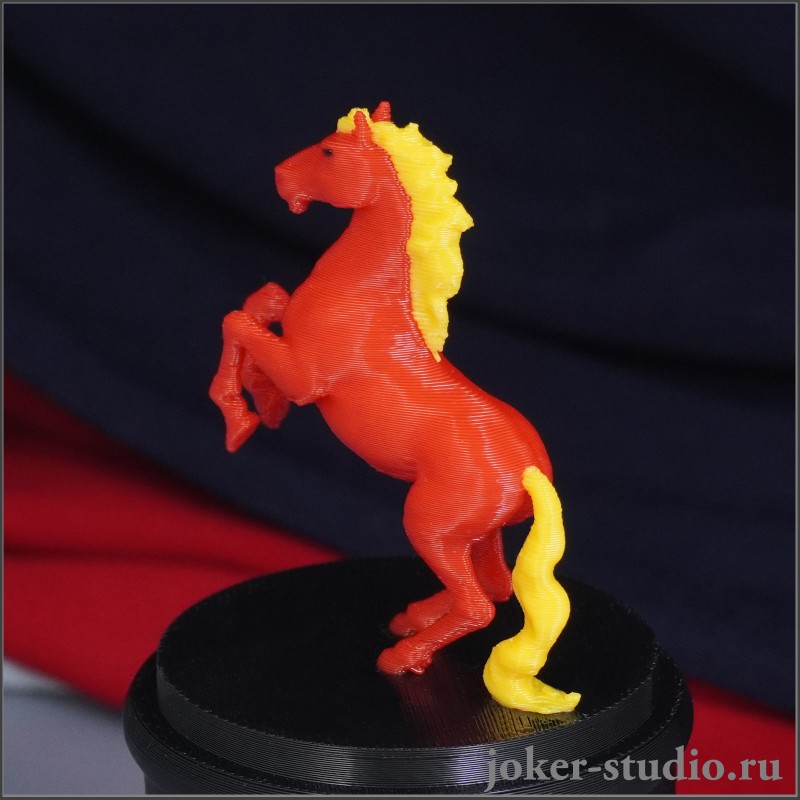 Фигурка "Огненная Лошадь" – Яркий Сувенир в Мастерской Joker-Studio. Изготовлена методом 3D печати FDM из трехцветного пластика.
