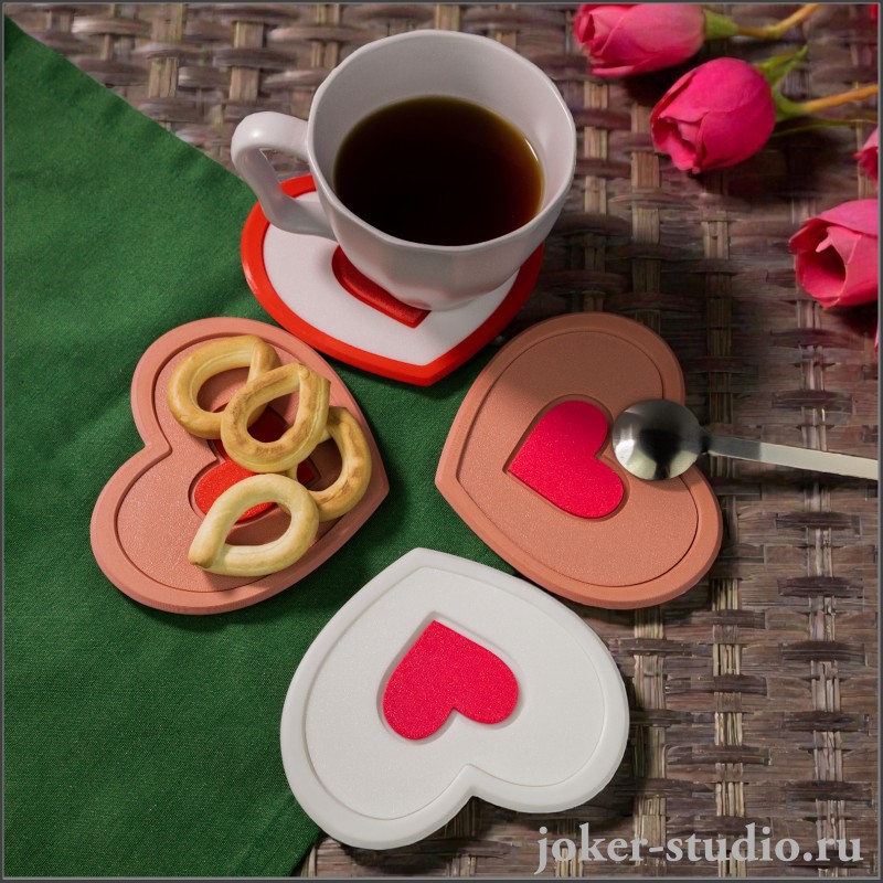 Подставки под кружки и стаканы в виде сердца от Joker-Studio — это не просто аксессуар, а стильный и практичный подарок, который порадует любую женщину.