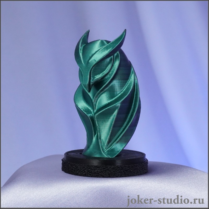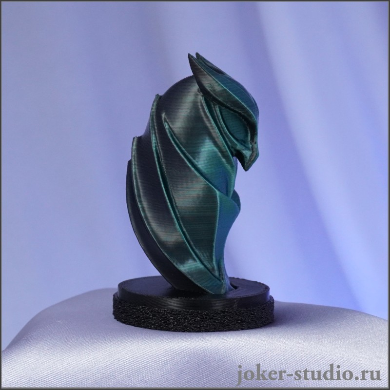 - Дизайн: Фигурка выполнена в стиле хай-тек с четкими контурами и выразительными деталями. Эффект хамелеона, меняющий цвет от зеленого до черного с блеском шелка, придает ей загадочности и современности, делая ее настоящим украшением любого интерьера.