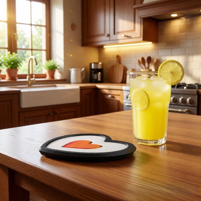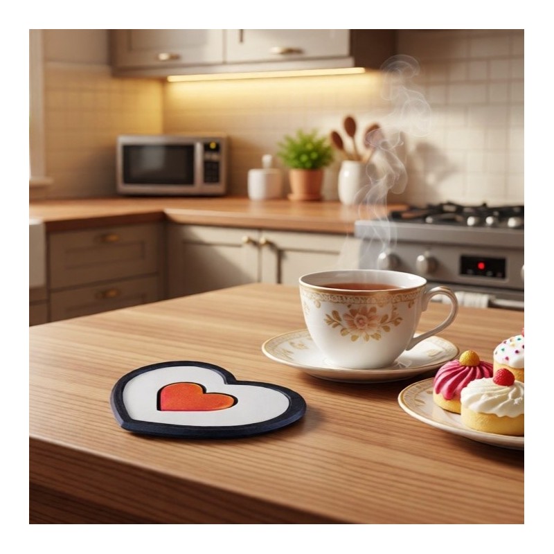 Подставка в виде серца защищает поверхность стола от горячего чая, кофе или какао.
