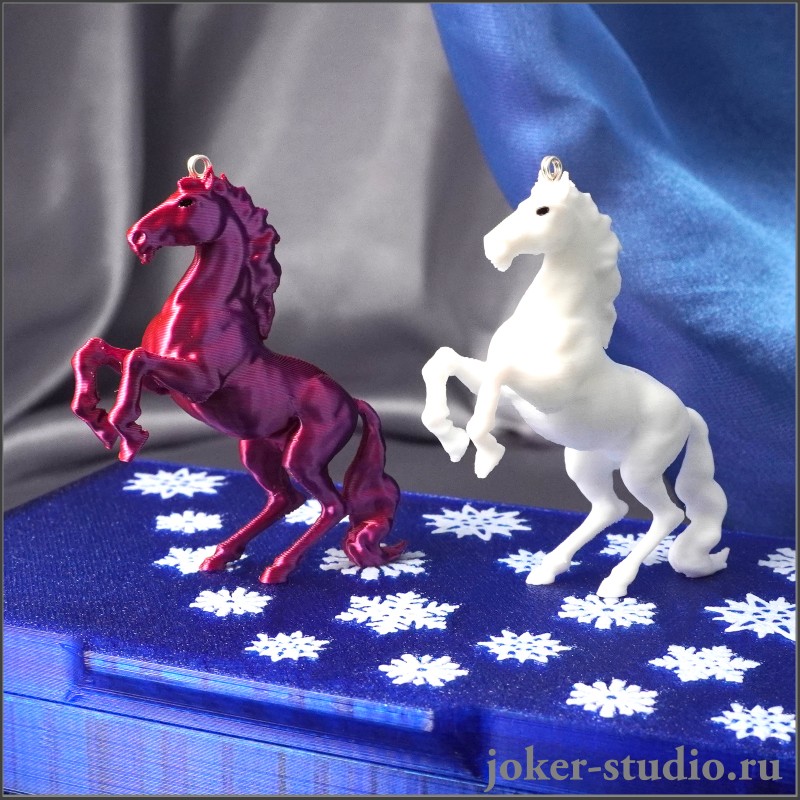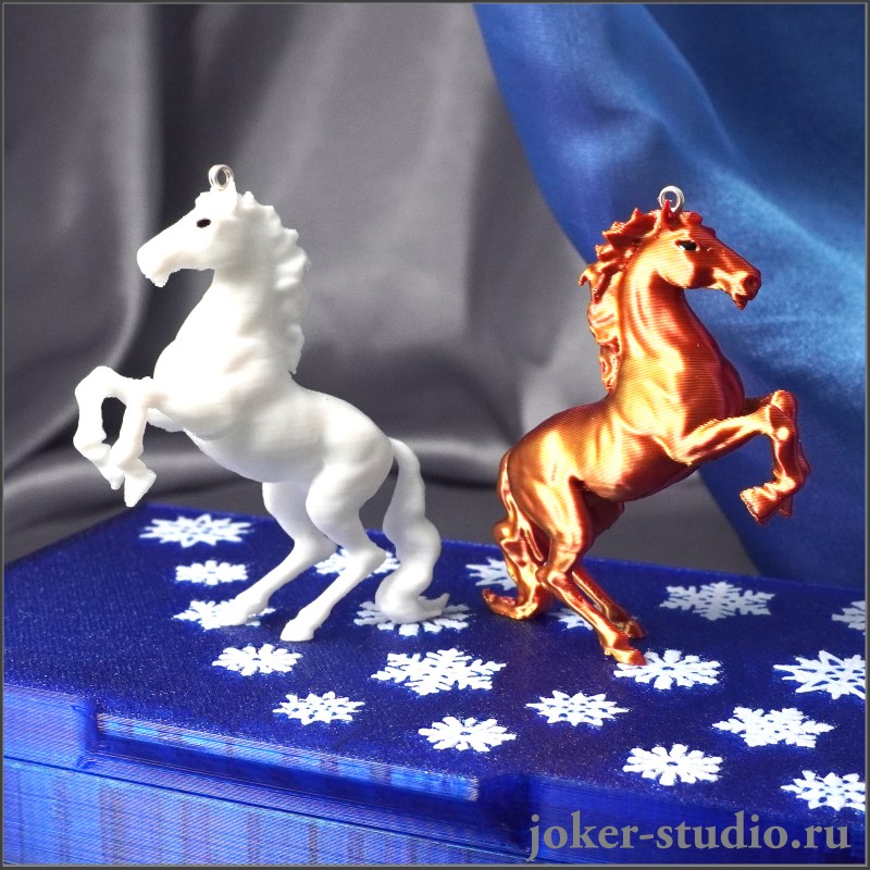 Каждая лошадка создана с любовью и вниманием к деталям. Ее плавные линии, динамичная поза и шелковый перелив поверхности делают ее по-настоящему уникальной. При свете гирлянд она начинает играть новыми красками, создавая сказочный и завораживающий эффект.