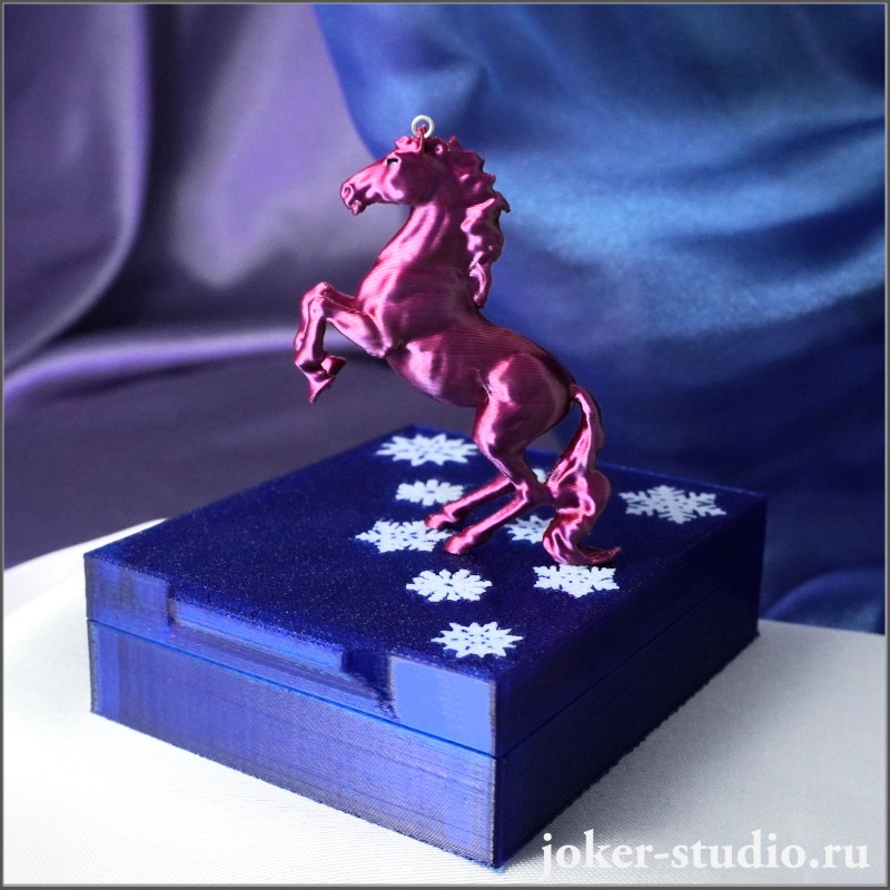 Наши лошадки упакованы в элегантные новогодние футляры, украшенные яркими белыми снежинками. Эти снежинки, словно выпавшие из зимней сказки, добавляют упаковке праздничного шика и создают атмосферу зимнего чуда. Каждый футляр — это не просто коробка, а часть праздника, которая уже с первого взгляда вызывает улыбку и предвкушение чего-то особенного.