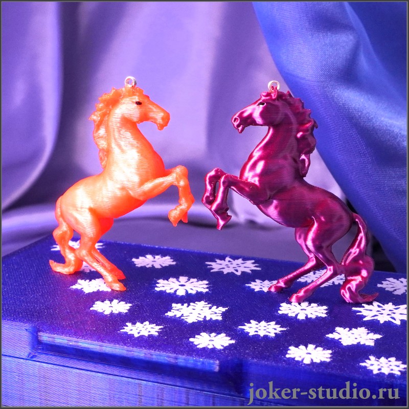 Каждая лошадка создана вручную с любовью и вниманием к деталям. Ее плавные линии, идеальный объем и гармония форм делают ее по-настоящему уникальной. Шелковый перелив поверхности придает игрушке изысканность, а при свете гирлянд она начинает играть новыми красками, создавая сказочный и завораживающий эффект. Это не просто декор – это эмоция, которая задаёт настроение праздника.